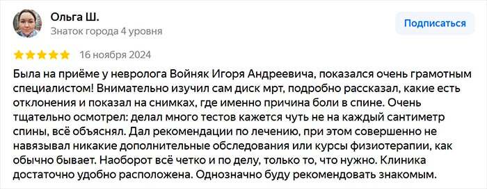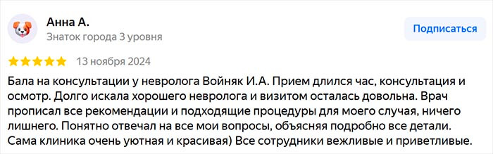 Как врач-невролог с многолетним стажем работы, я знаю насколько пациентам важно чувствовать себя в безопасности, поэтому я оперативно отвечаю на ваши сообщения.