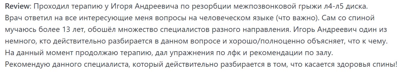 Отзыв пациента после лечения